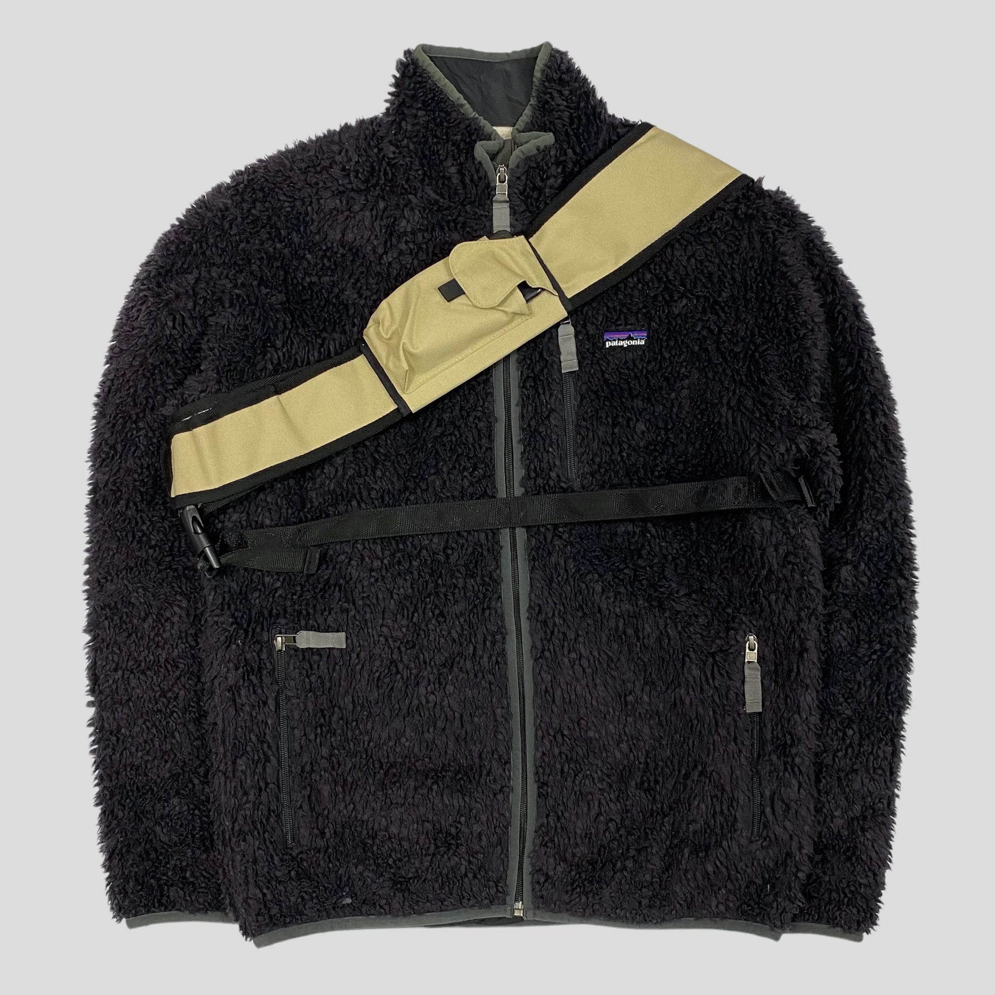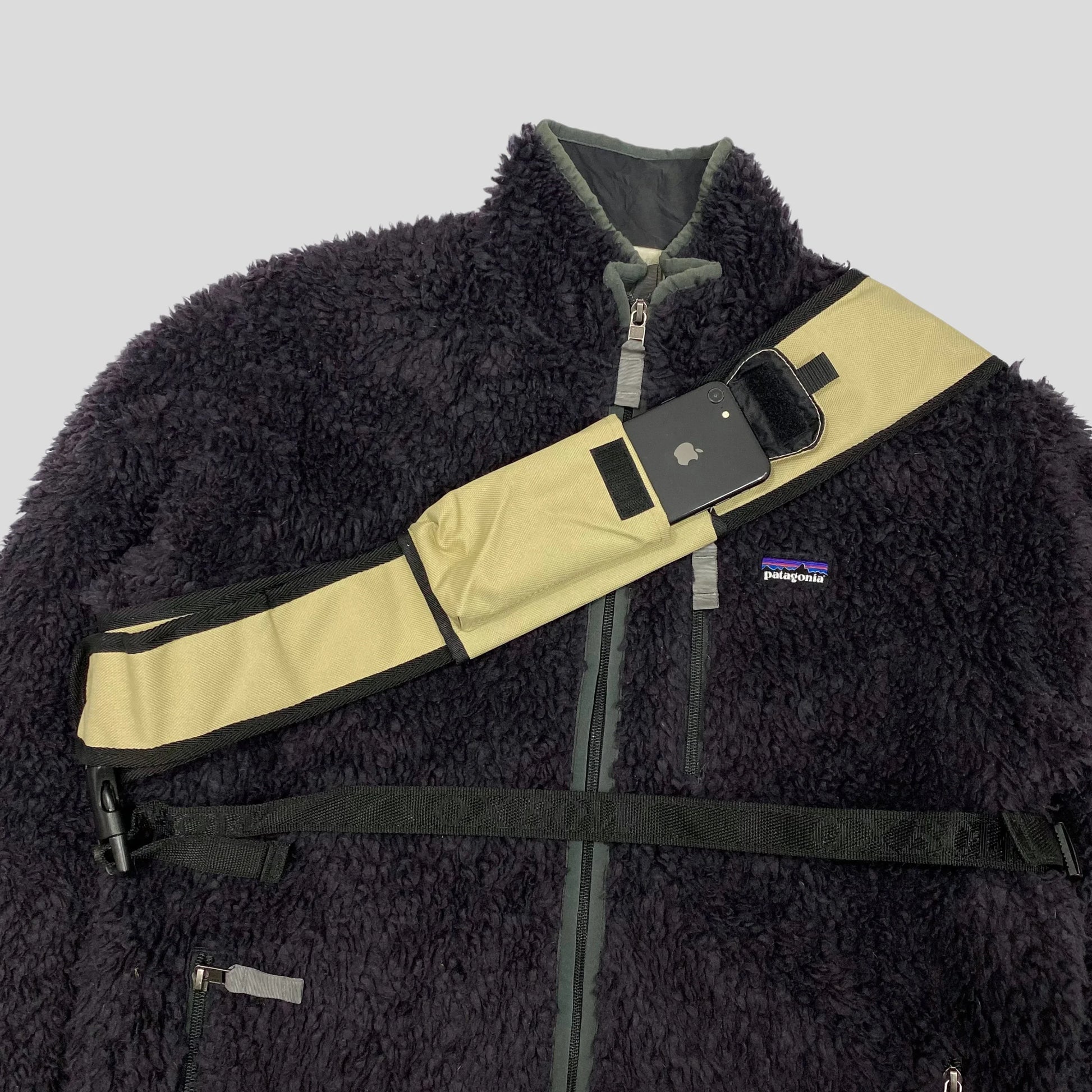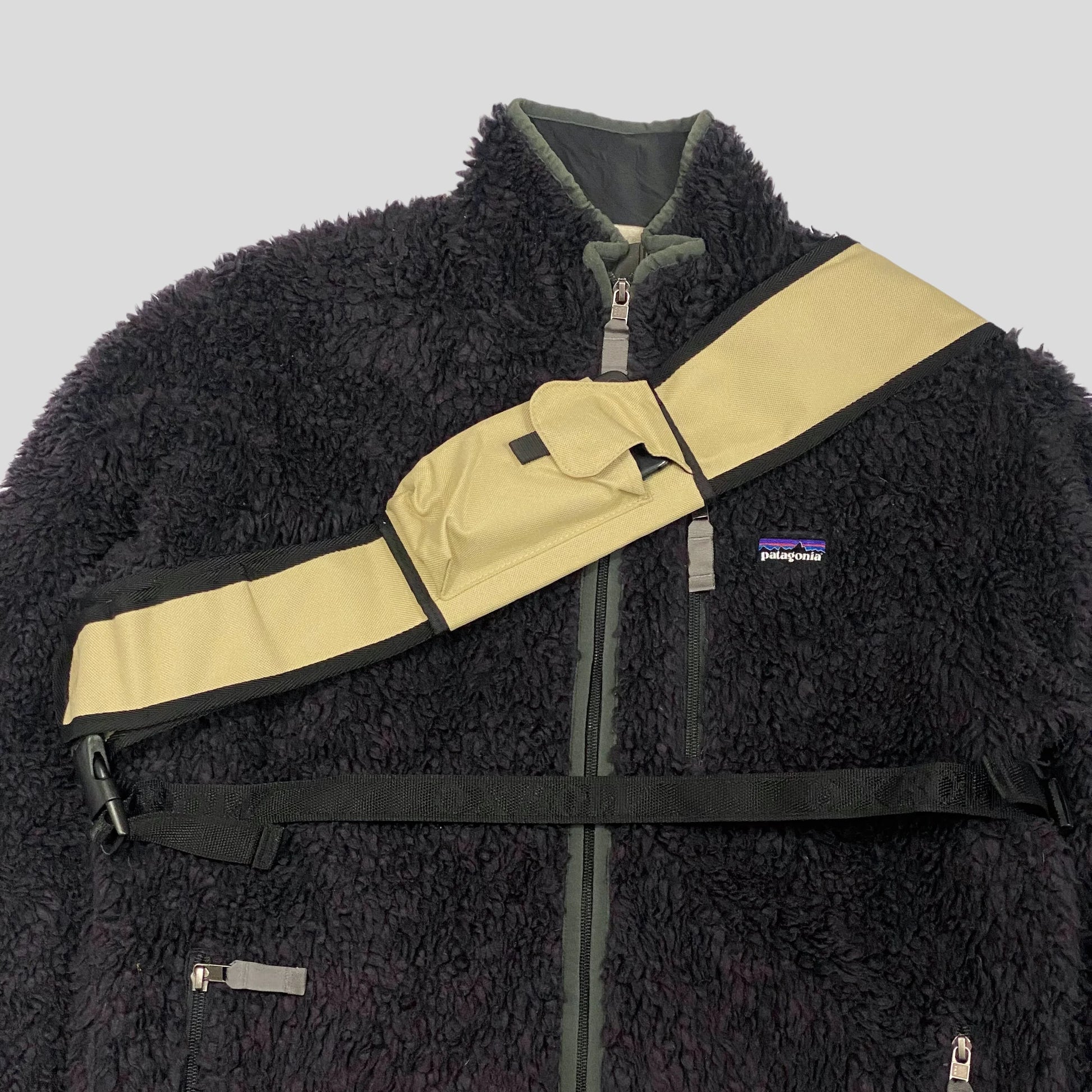 Rare early 2000’s Oxbow Tri-Harness Slingbag, incredible piece from a lesser known 2000’s brand, featuring an exposed PVC zip pocket, numerous multipocket storage options and a removable velcro phone holder on the strap.