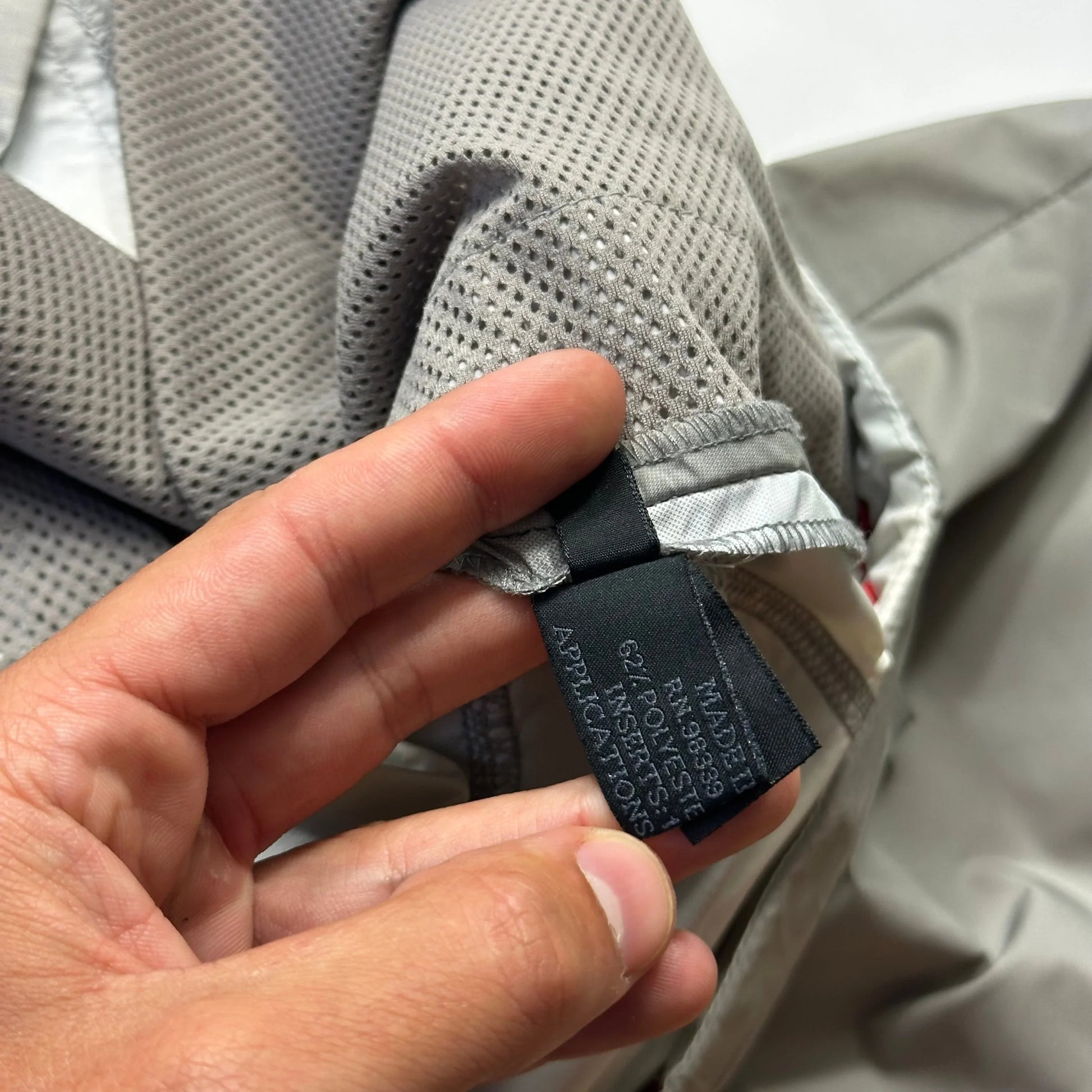 Extremely rare and sought after Prada Sport SS00 White & Grey X-Ray Cloud print convertible trousers with transparent zip outs, iconic X-ray tie-dye print on a nylon shell, two hand pockets and mesh pocket to rear, adjustable belt at waist to fit.