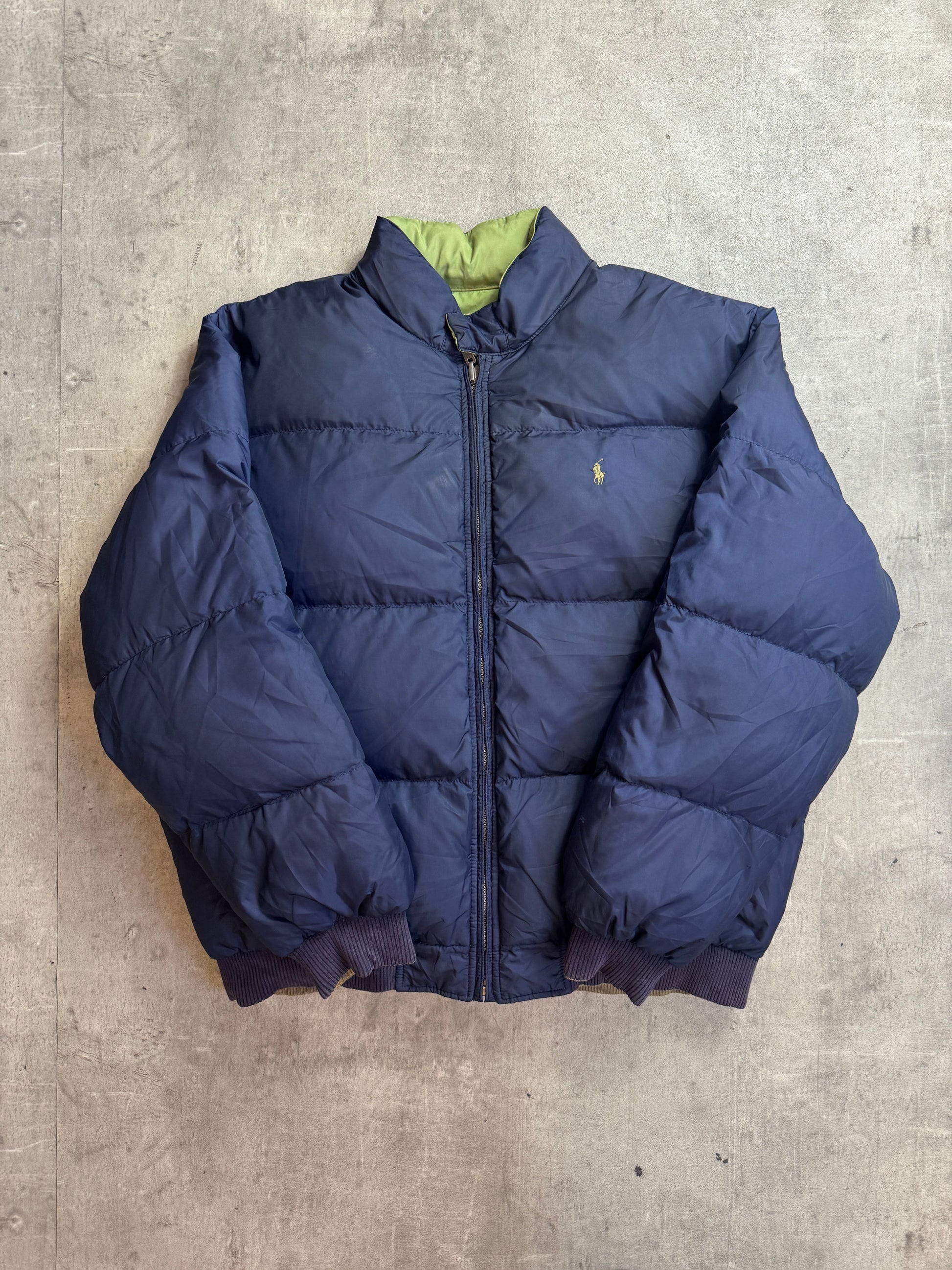 Ralph Lauren Khaki Reversible Poly Navy Lined Down Bomber