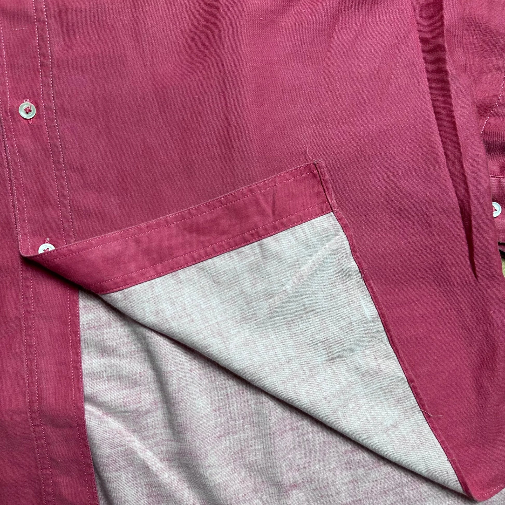 Designed by Massimo Osti. From Stone island marina’s elusive black label. Bubble gum pink colour way. Rich and soft medium weight brushed cotton textures throughout. Garment dyed colour pigment process. Calligraphy scrip “Isola Di Pietra” logo stencil in contrasting white. Dual breast pocket design with a a close spread Oxford collar.