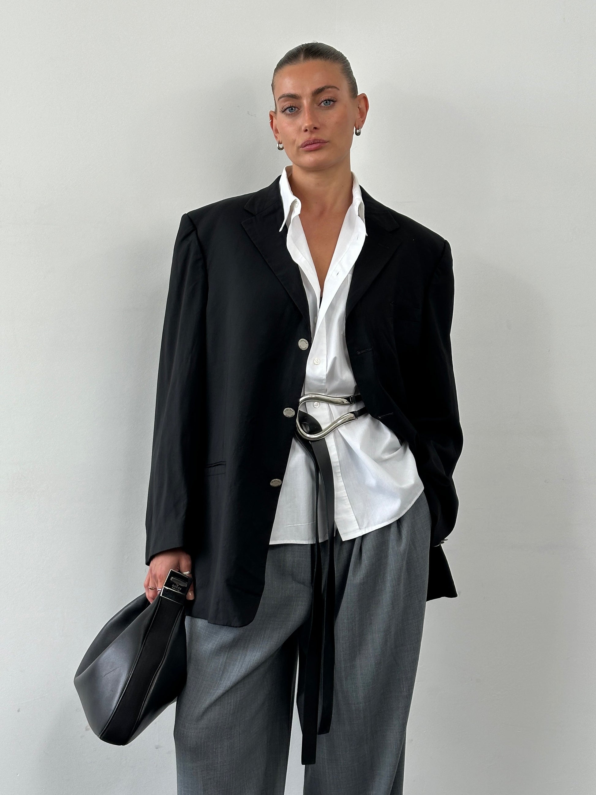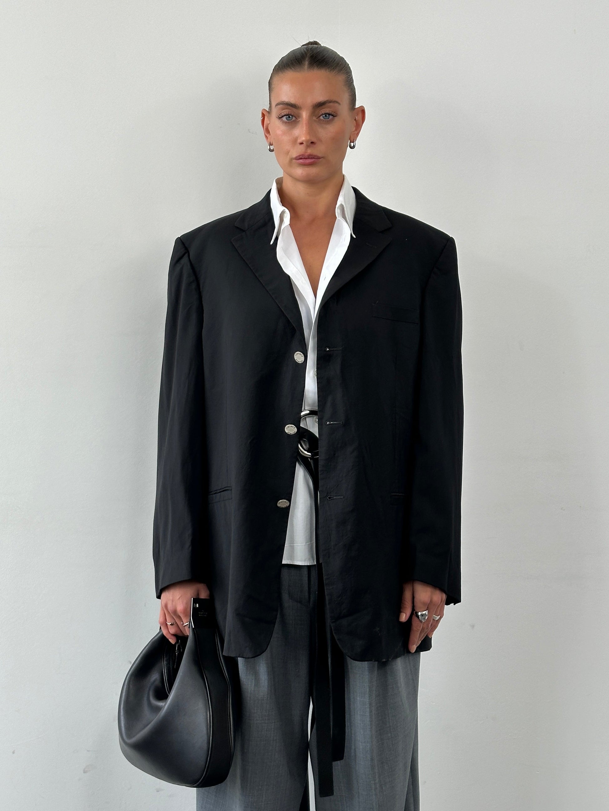 Flaws: general wear, creasing and damages across blazer