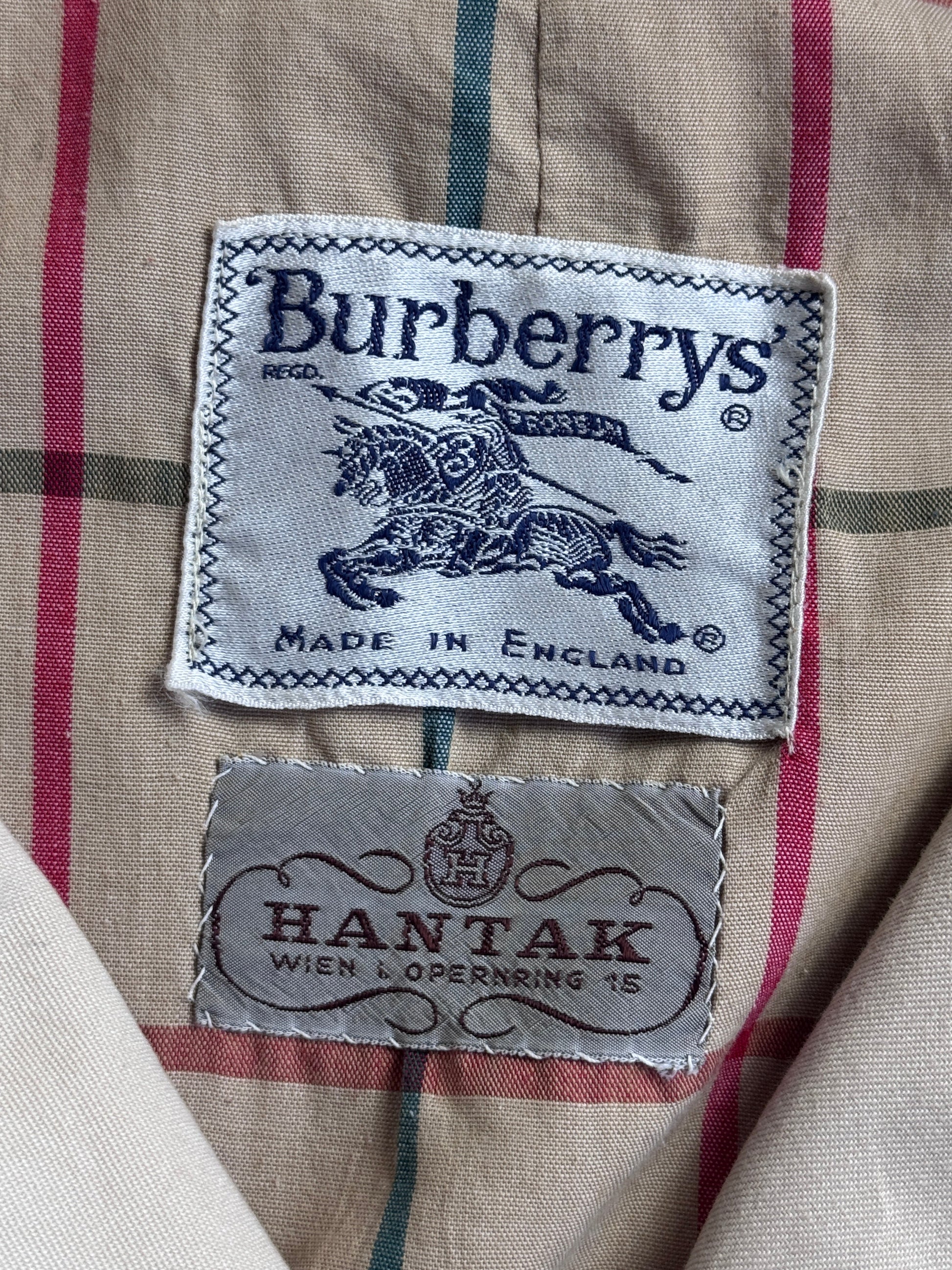 Vintage 80s Burberry Hantak Cream Tattershall Check Lined Single Breasted Trench Coat