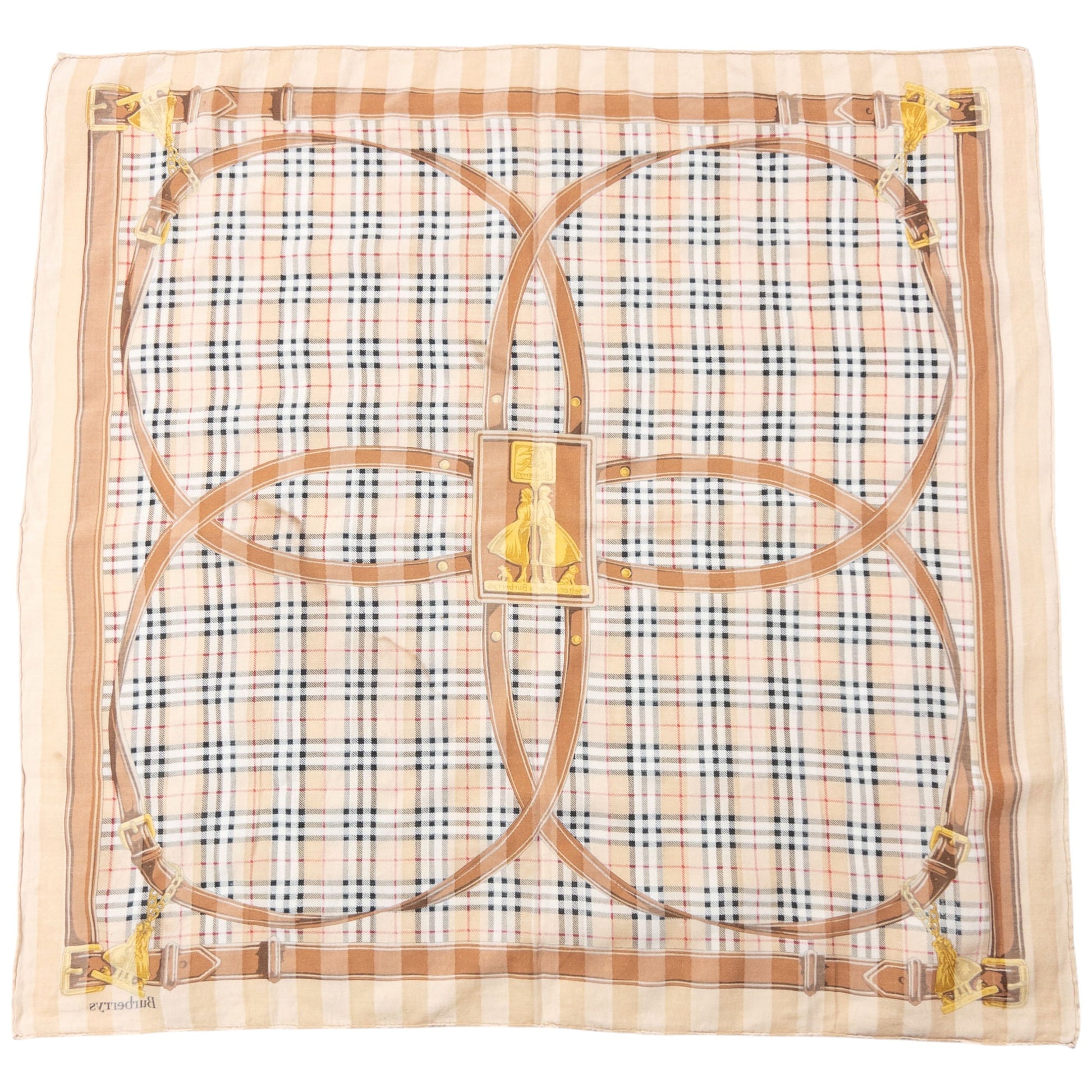 Vintage 90s Burberry Nova Check Buckle Print Silk Scarf | O/S, Beige