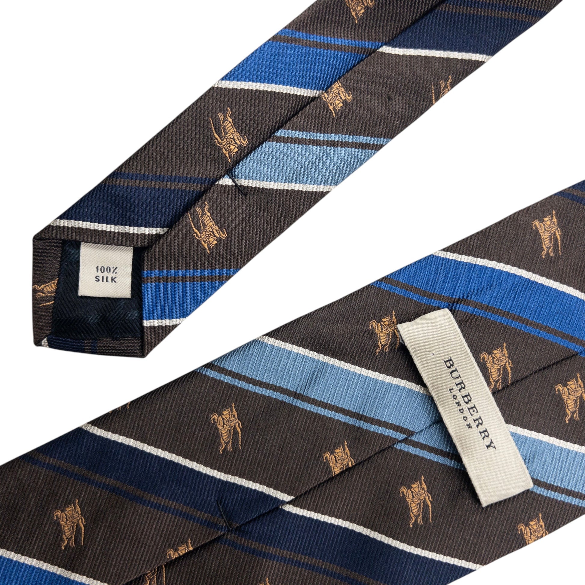 Vintage 2000s Burberry Striped Monogram Silk Tie | O/S, Blue