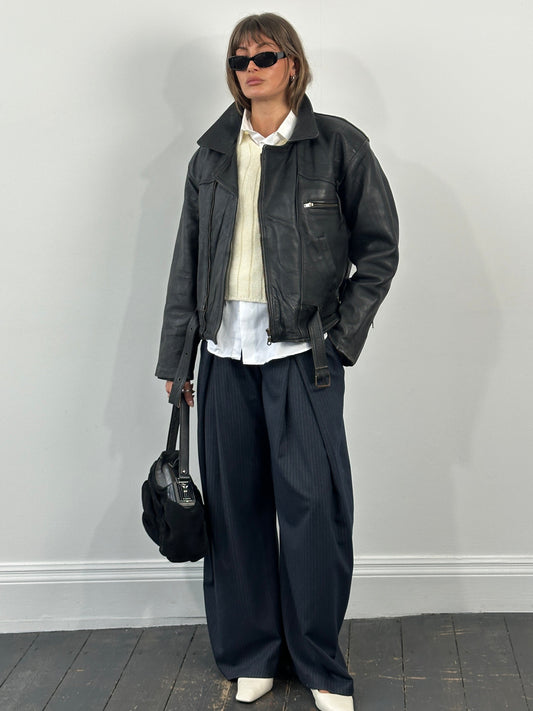 Vintage 1990s Dagger Collar Leather Jacket - M