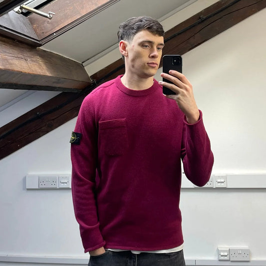 Stone Island Maroon AW18 Wool Pocket Detail Crewneck Jumper
