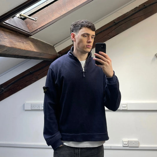 Stone Island Navy 00s Dual-Cuff Half Zip Jumper