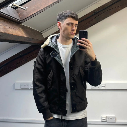 Produttore:ajpg_shopStone Island Khaki Brown AW10 Shearling Hooded Padded Oxford Nylon Bomber Jacket