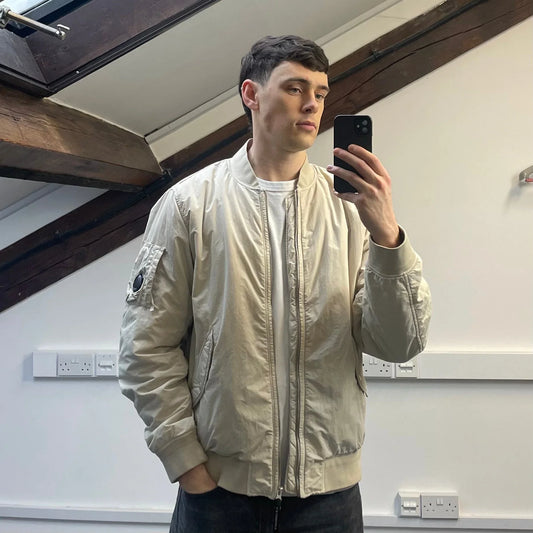 C.P. Company Cream Flatt Nylon Quilted Bomber Jacket