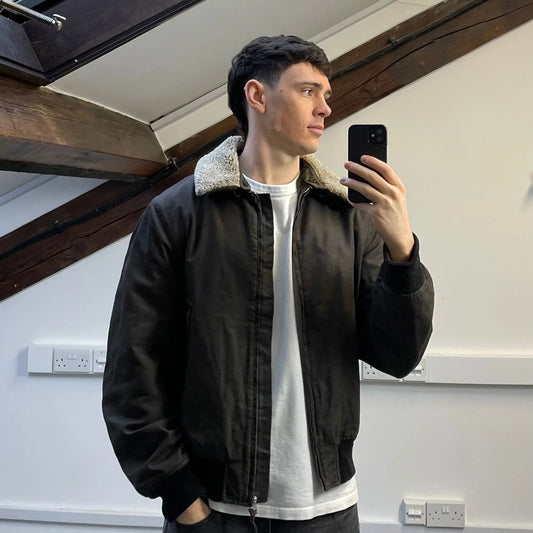 C.P. Company Khaki AW02 Coated Cotton Shearling Collar Bomber Jacket