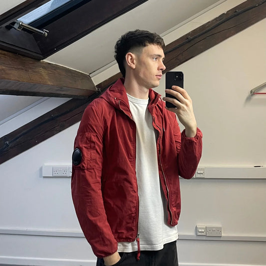 C.P. Company Red Lightweight Hooded Windbreaker Jacket