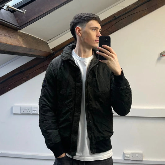 Stone Island Green AW11 Nylon Sheen Concealed Hood Bomber Down Jacket