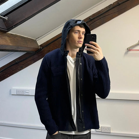 C.P. Company Navy & Black Wool & Nylon Hybrid Knit Goggle Jacket