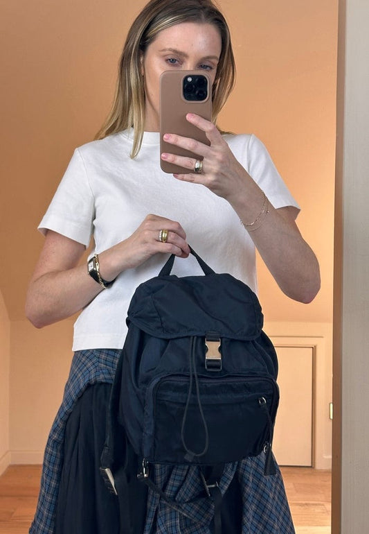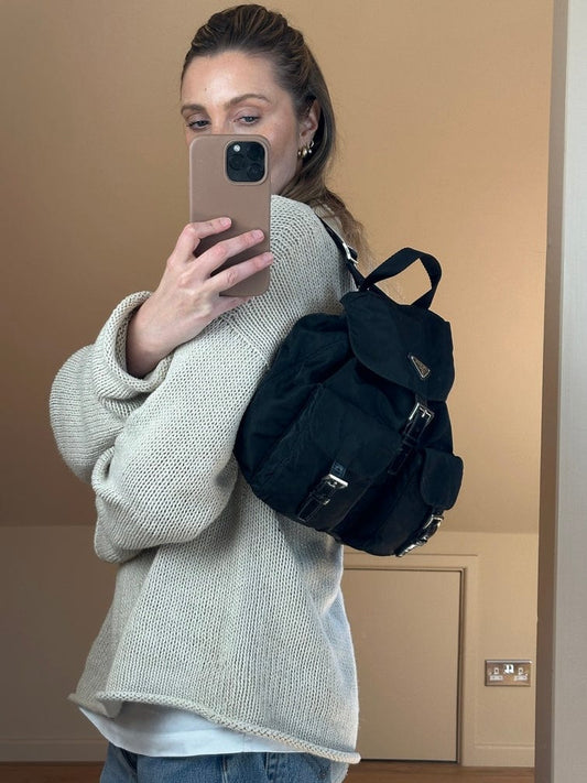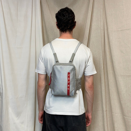 Prada Sport Grey 1999 Nylon Mesh Harness Backpack Spellout Bag