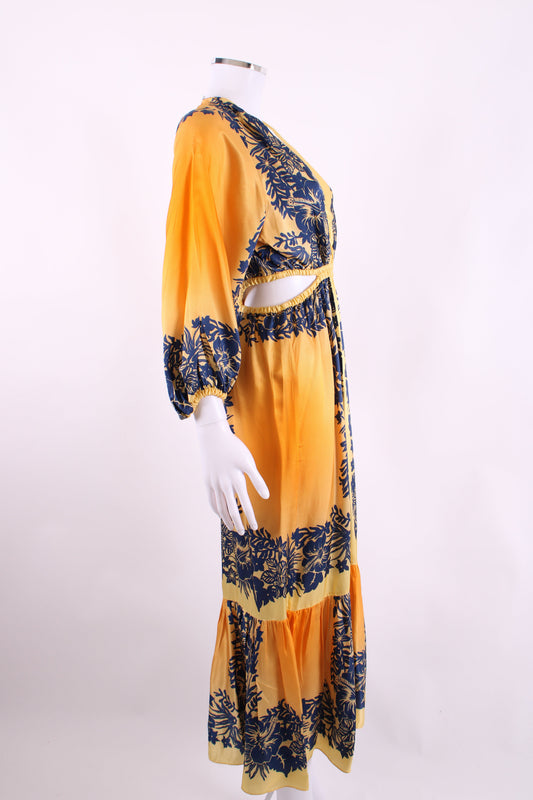Sandro L/S Floral Cut Out Dress Yellow/ Navy 6