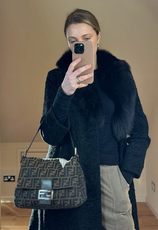 Vintage Fendi Mamma Baguette Zucca Canvas Shoulder Bag