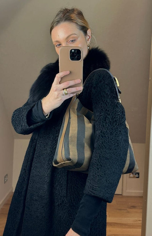 Vintage Fendi Pequin Stripe Canvas Shoulder Bag