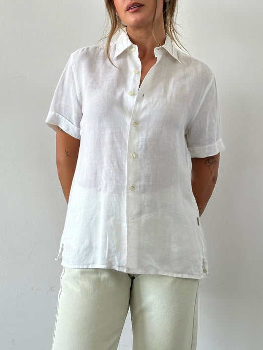 Guess Pure Linen Sheer Short Sleeve Shirt - M