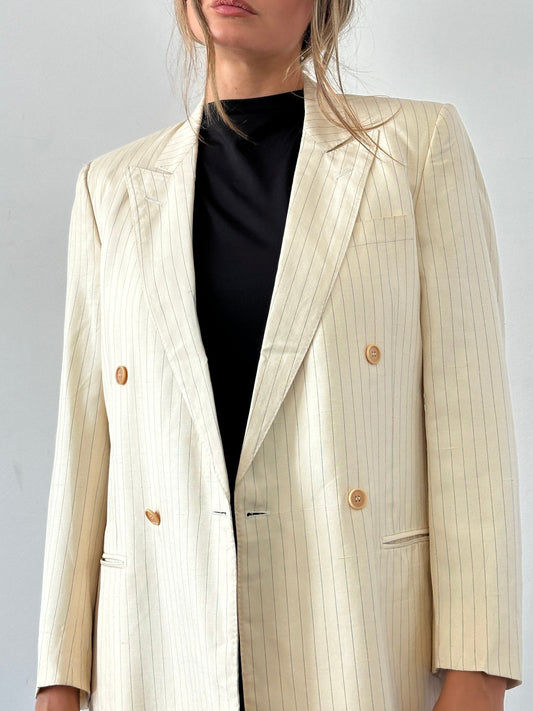 Pierre Cardin Pure Silk Stripe Double Breasted Blazer - 36R/S