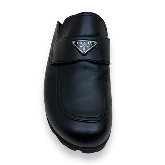 PRADA SOFT PADDED NAPPA LEATHER SABOTS BLACK UK12