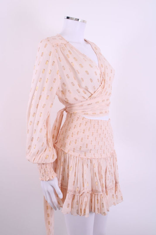 Sunday Saint Tropez Blouse/ Skirt Co-ord Peach/ Gold S
