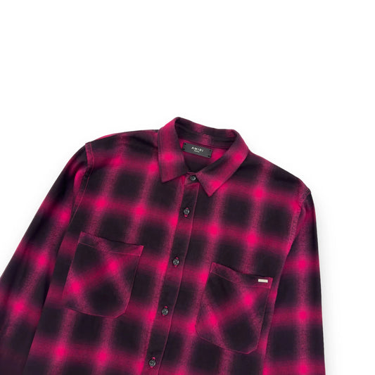 AMIRI DEGRADE DISTRESSED CHECKED FLANNEL SHIRT PINK M