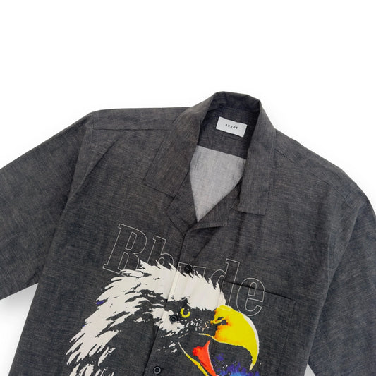 RHUDE EAGLE-PRINT BOWLING SHIRT GREY M