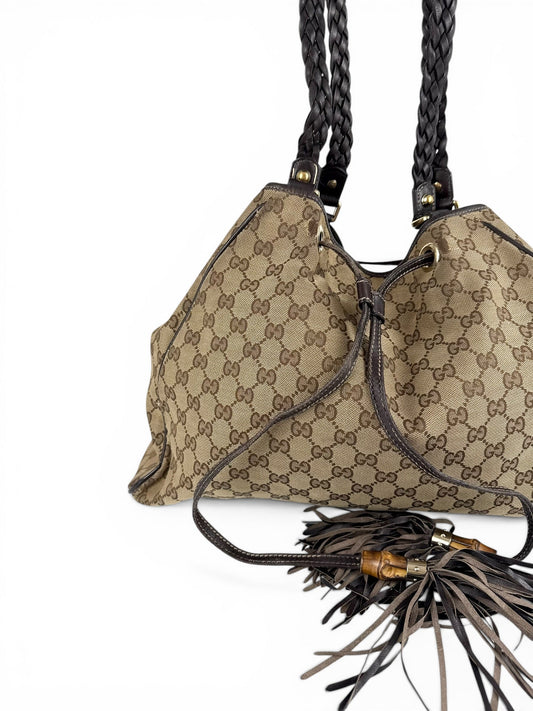 Vintage 90s Gucci GG Monogram Tassel Rope Tote Bag