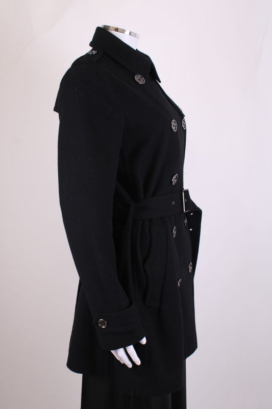 Burberry Brit Double Breasted Wool Trench Coat Black 10