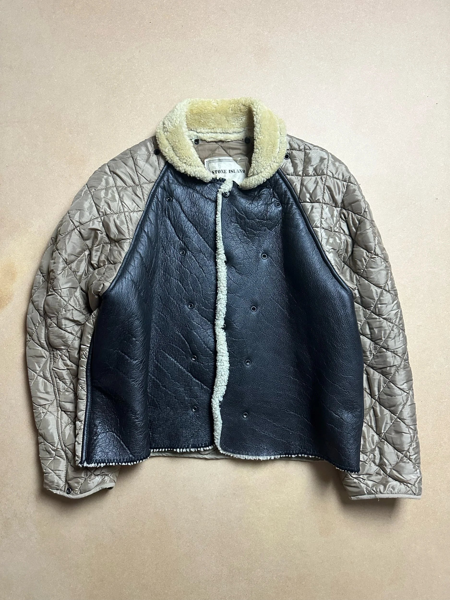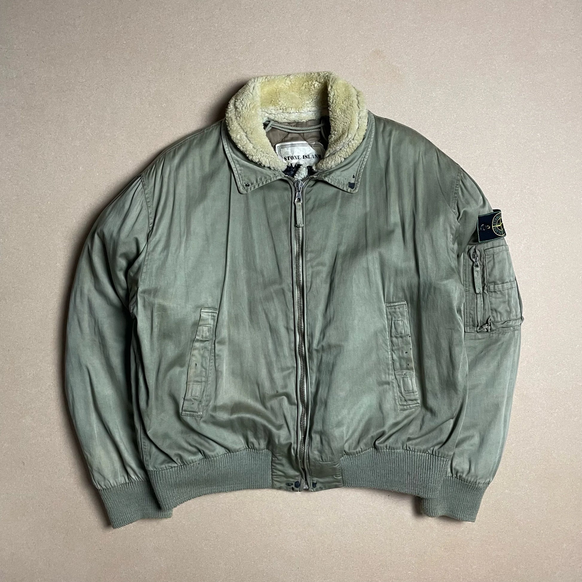 Designed by Massimo Osti. Featuring a classic MA1 bomber design. Velcro closure patch pockets and zip up arm stash pocket. Ribbed elastic cuffs and hem. Soft sheep’s leather / shearling collar microfibre silk mixed liner for second layer.