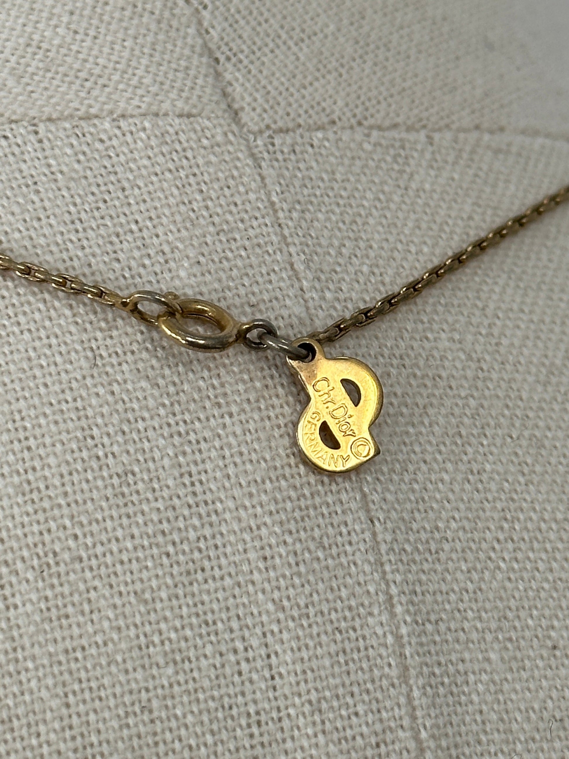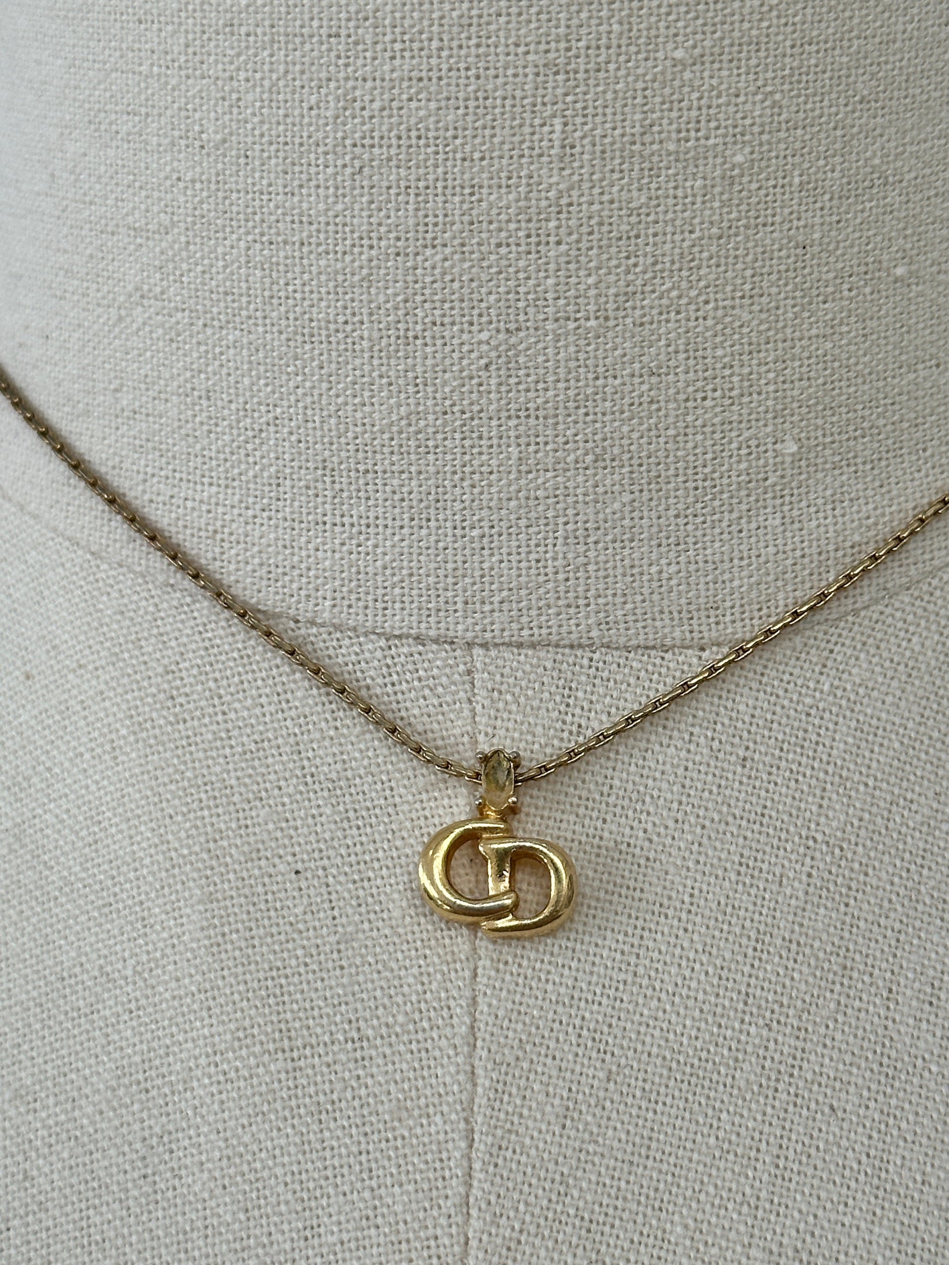 Christian Dior 1990s 16” Gold Plated CD Logo Pendant Necklace