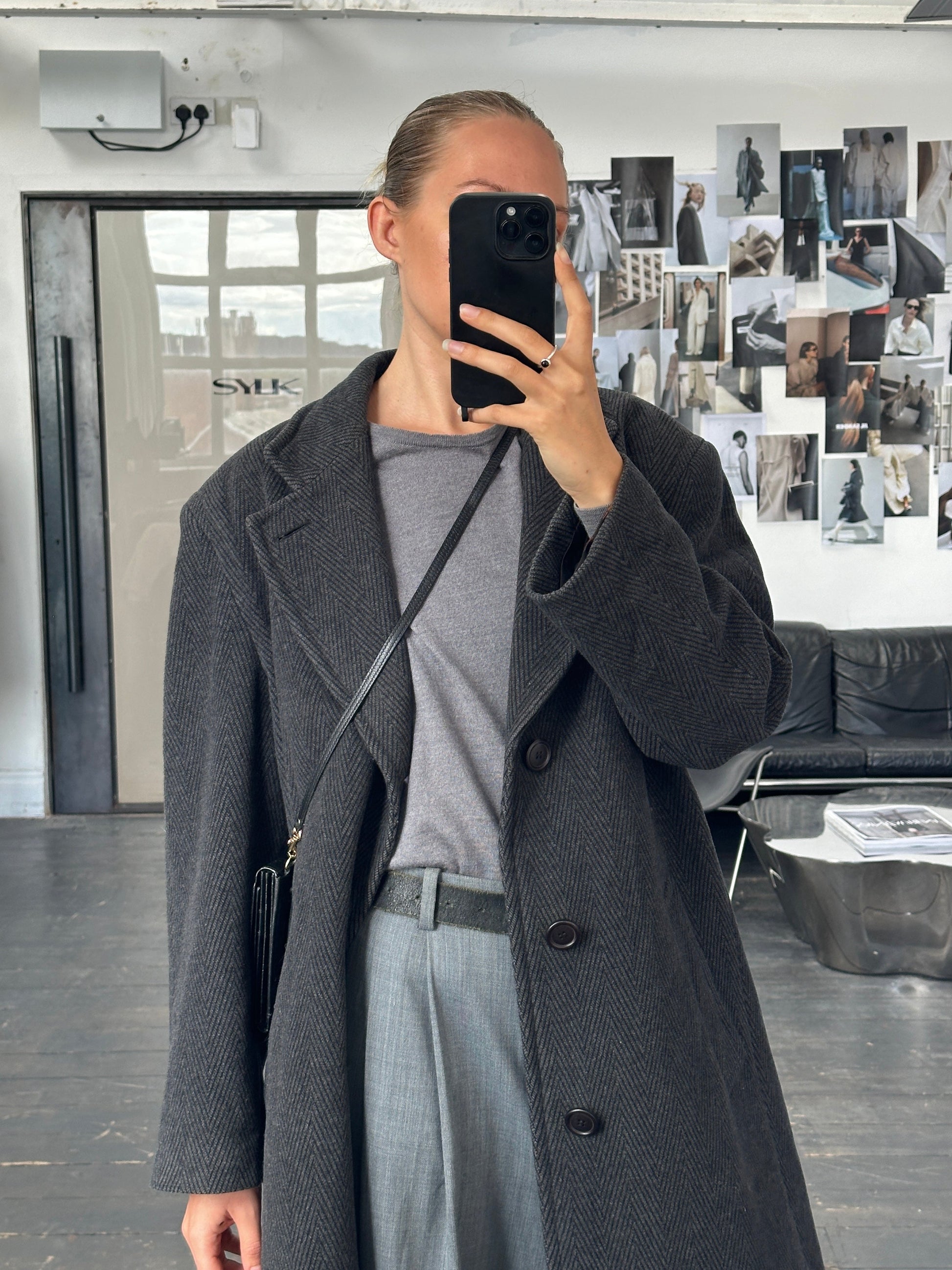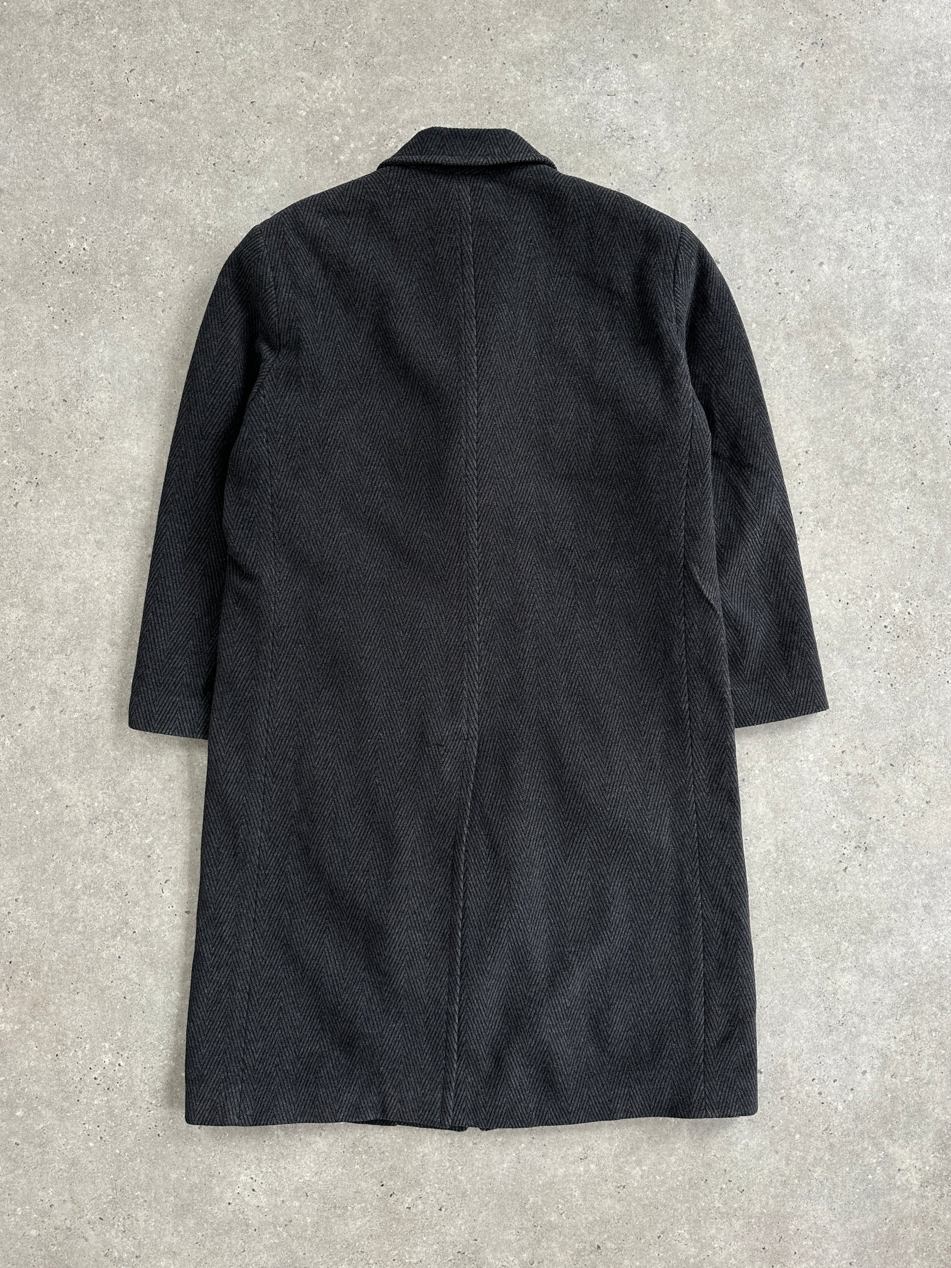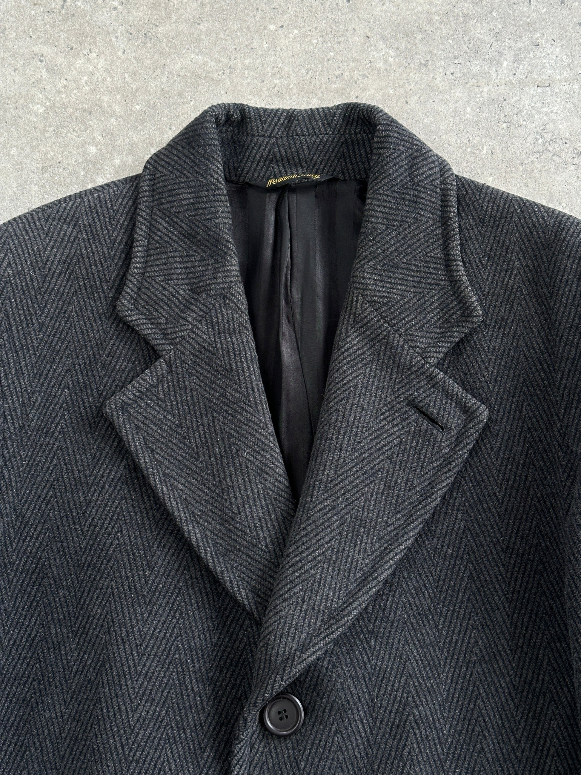 Italian Vintage 1980s Wool Cashmere Herringbone Coat - XL