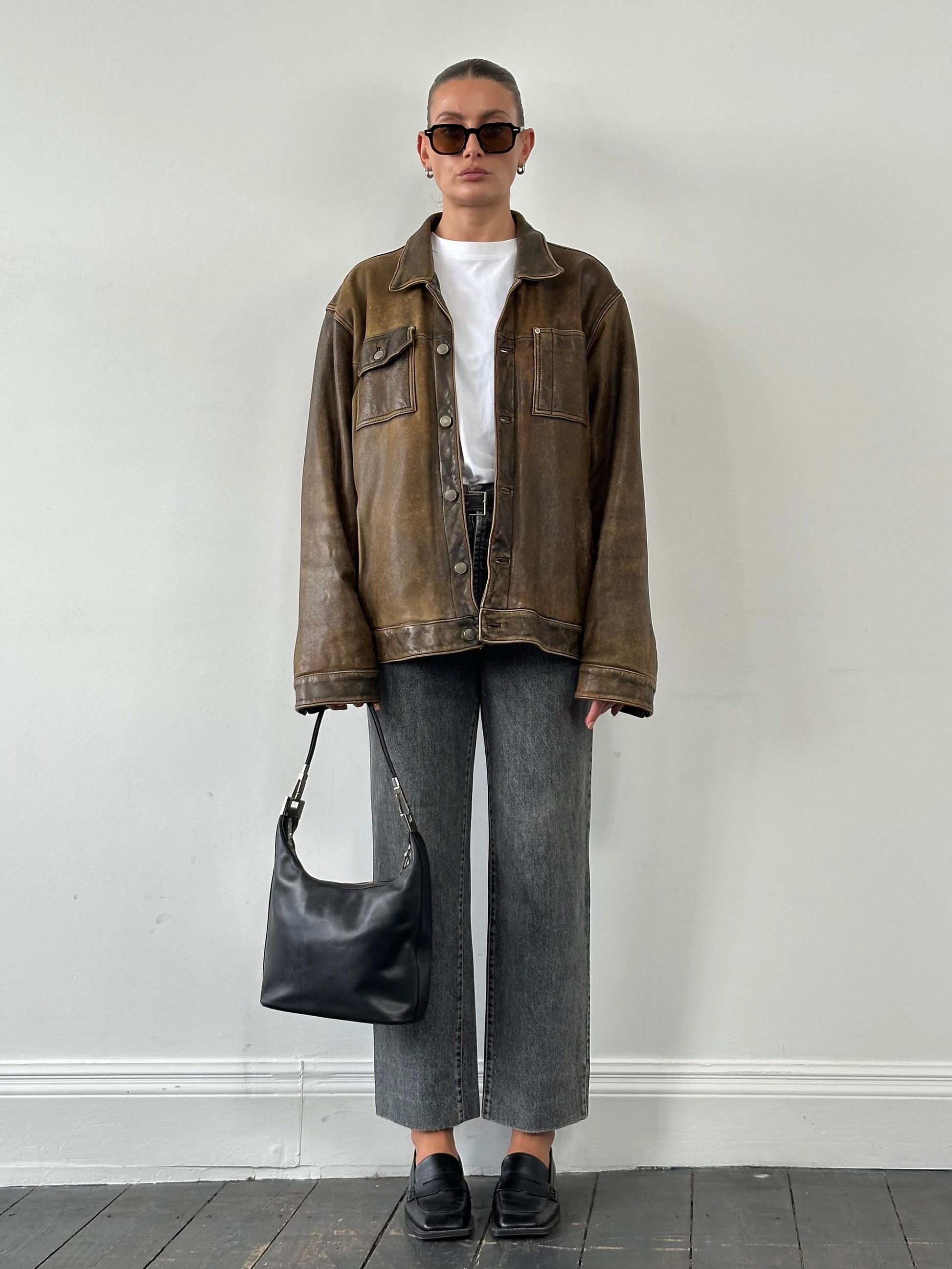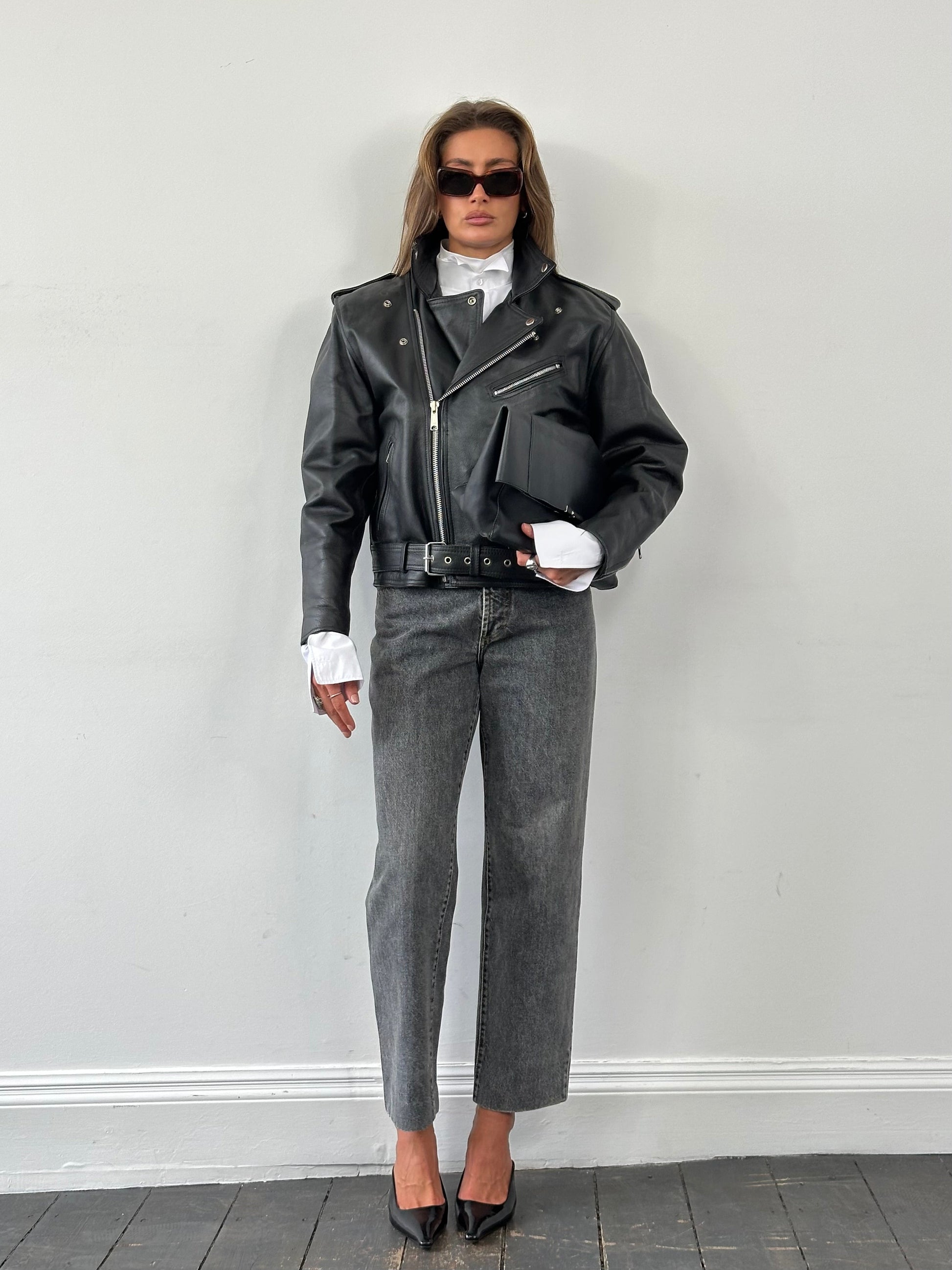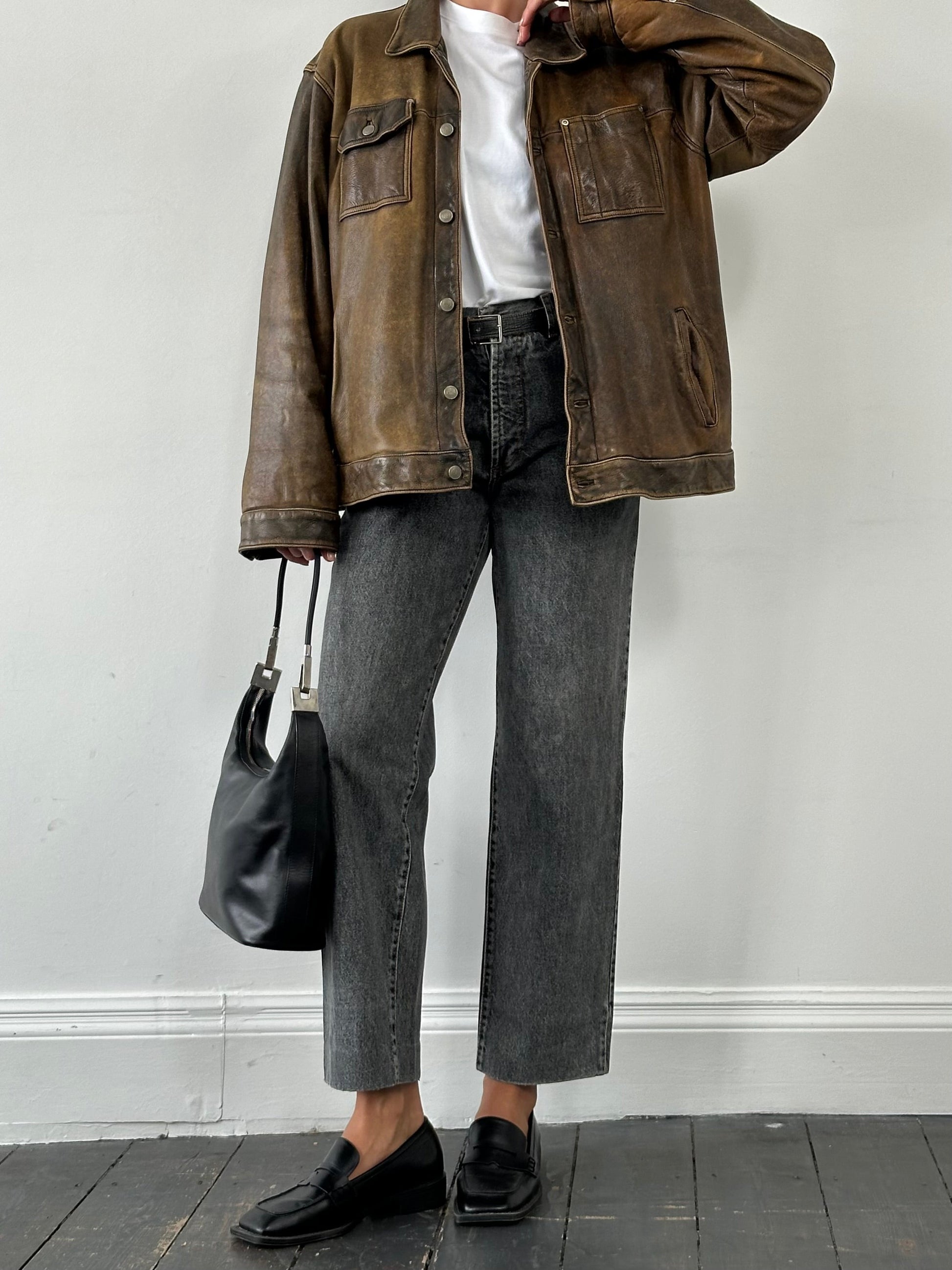 Italian vintage Anthony’s straight-leg denim, cut high at the waist with a clean black wash and authentic worn patina. A timeless off-duty essential.