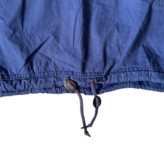 Size fits boxy mens large, measures 23.25” pit to pit x 26” neck to hem x 25.25” shoulder to cuff.