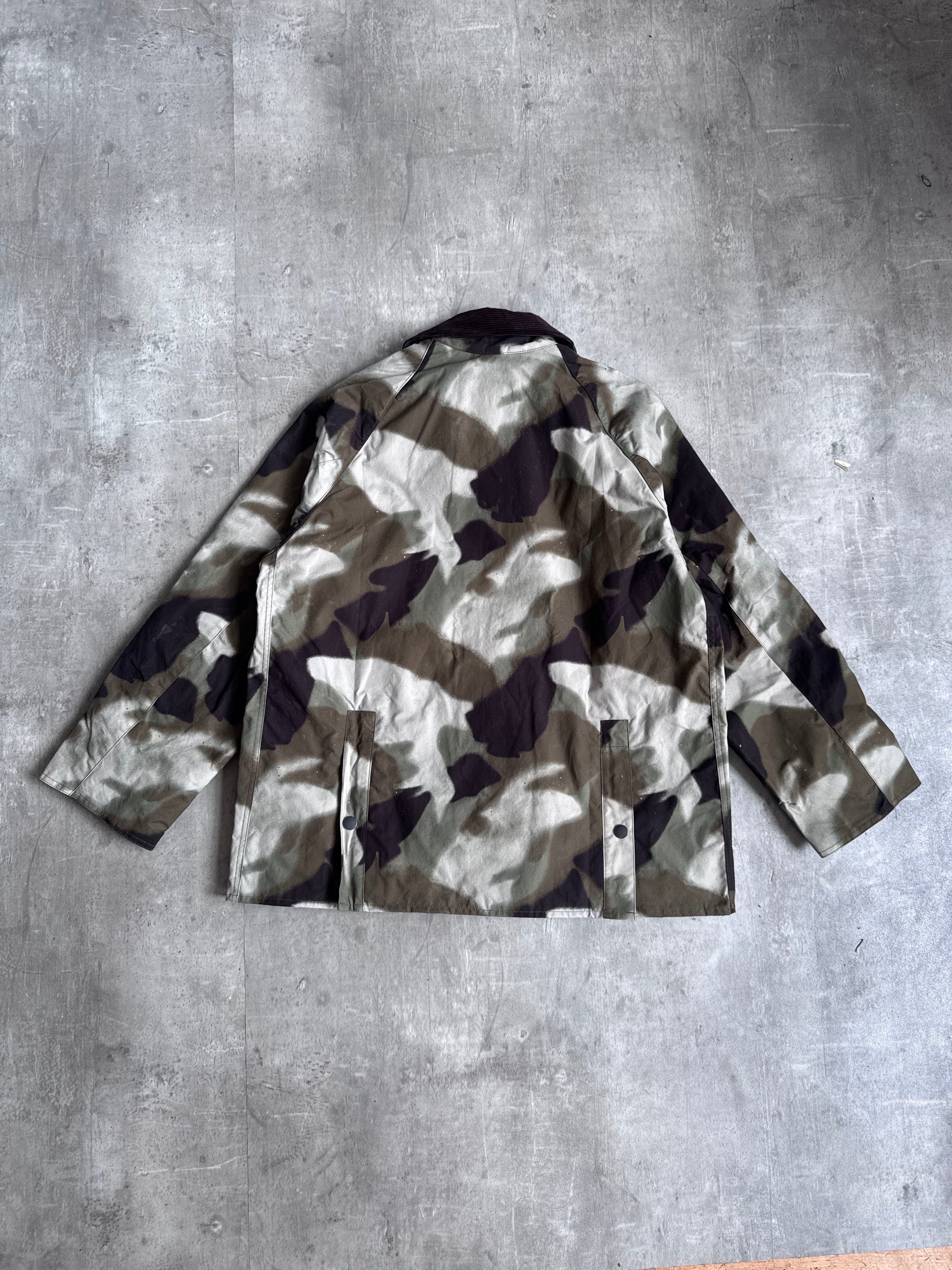 The Palace x Barbour camo Bedale jacket is a standout collision of classic countryside utility and streetwear irreverence. Reimagining Barbour’s iconic waxed Bedale silhouette, this limited-edition release features a bold camouflage print with co-branded details that fuse Palace’s skate DNA with Barbour’s legacy in British outerwear. Traditional elements like corduroy collar lining, snap-close pockets, and rugged waxed cotton construction are elevated with a modern edge, making it a must-have for collectors of collaboration grails, technical layering pieces, and heritage gear with hype appeal.