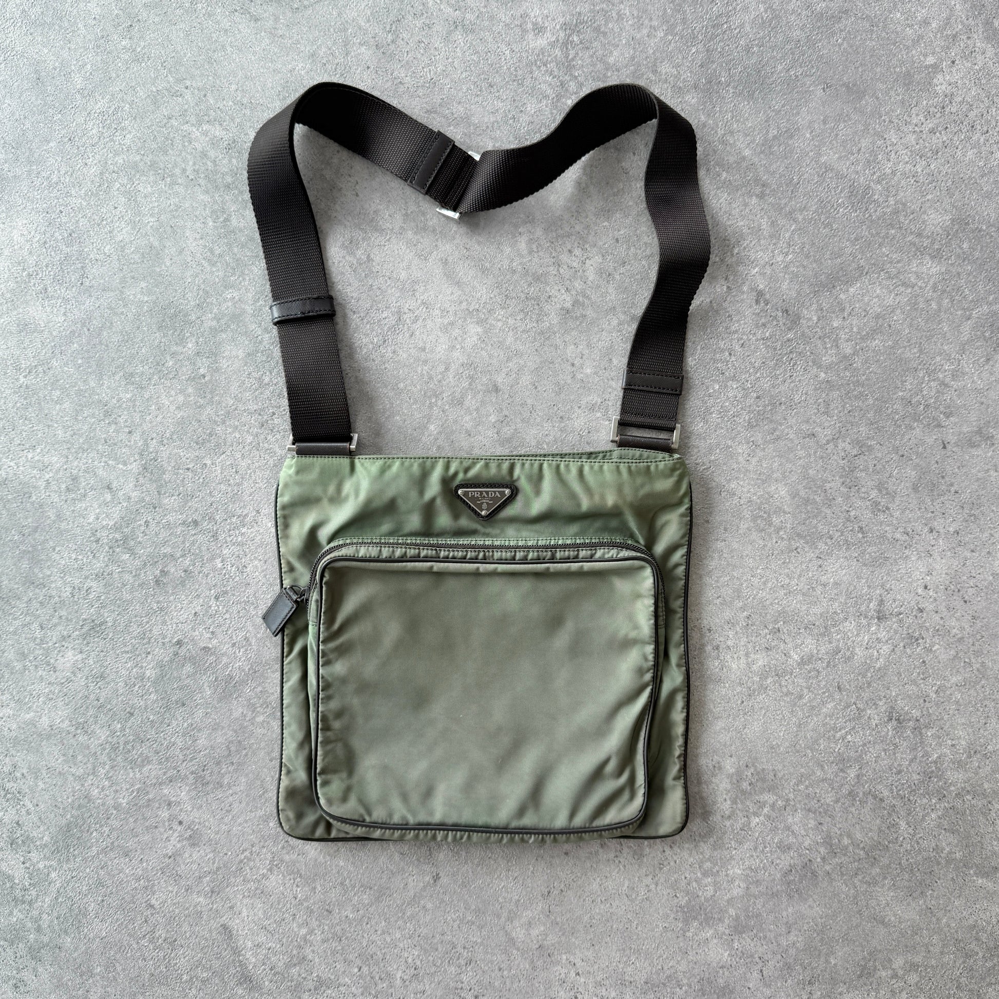 Prada Milano 2000s cross body nylon bag (12”x11”)