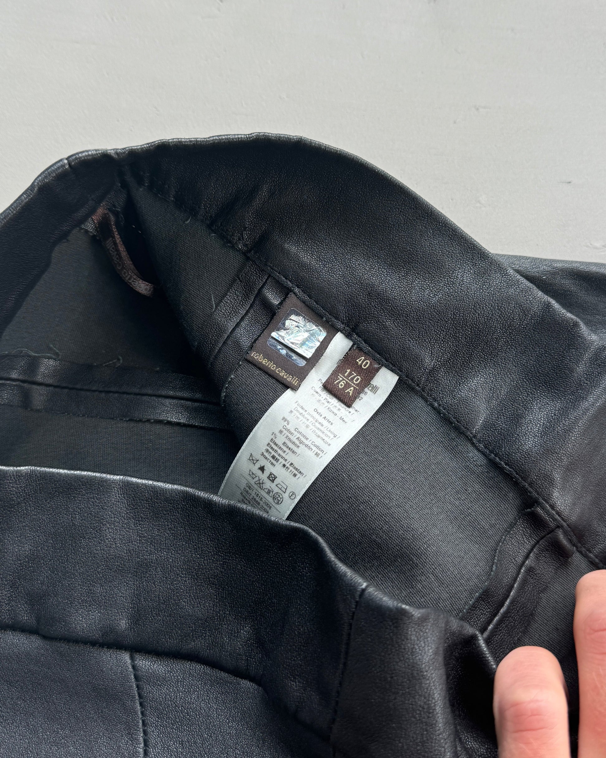 Roberto Cavalli FW09 Flared Black Leather Trousers.
