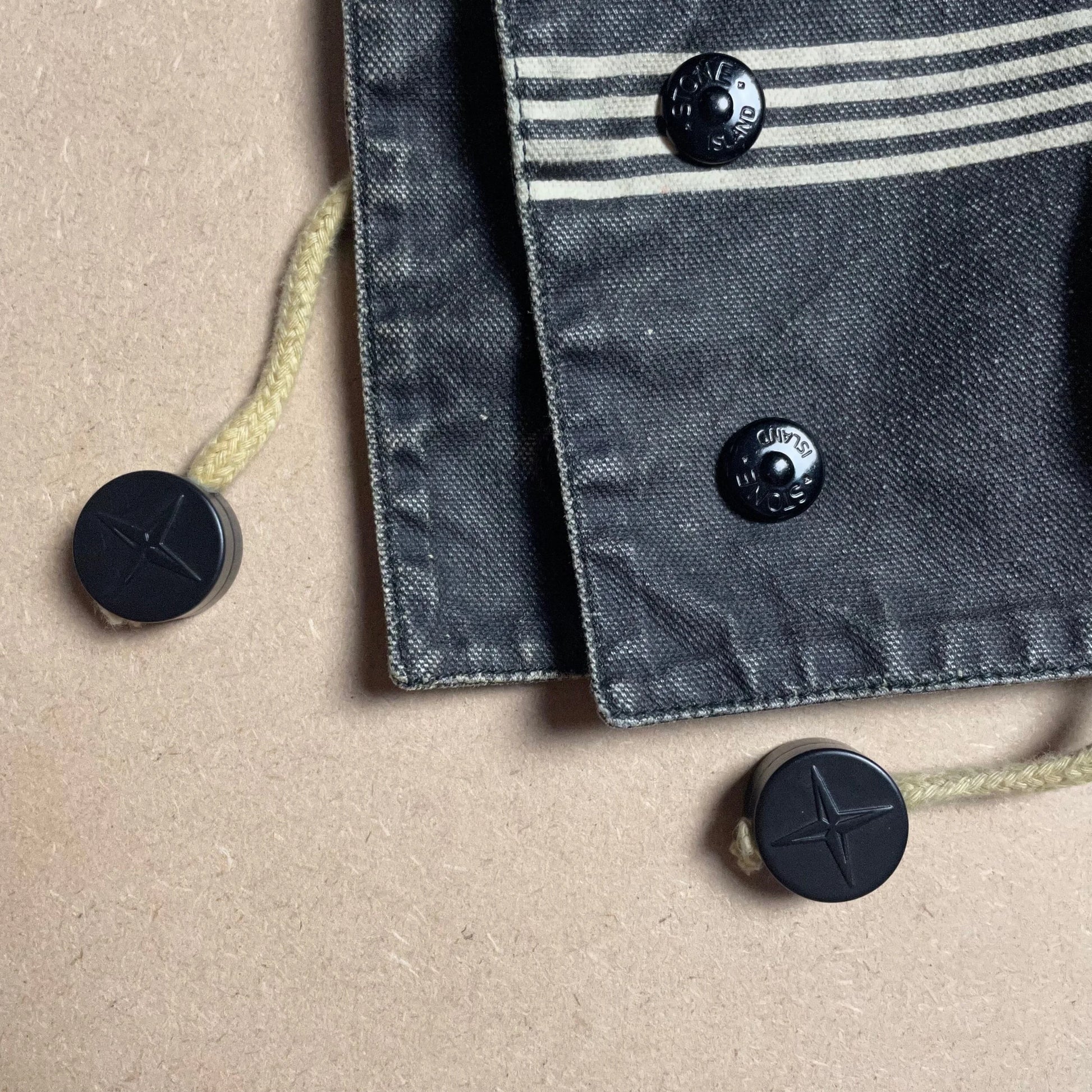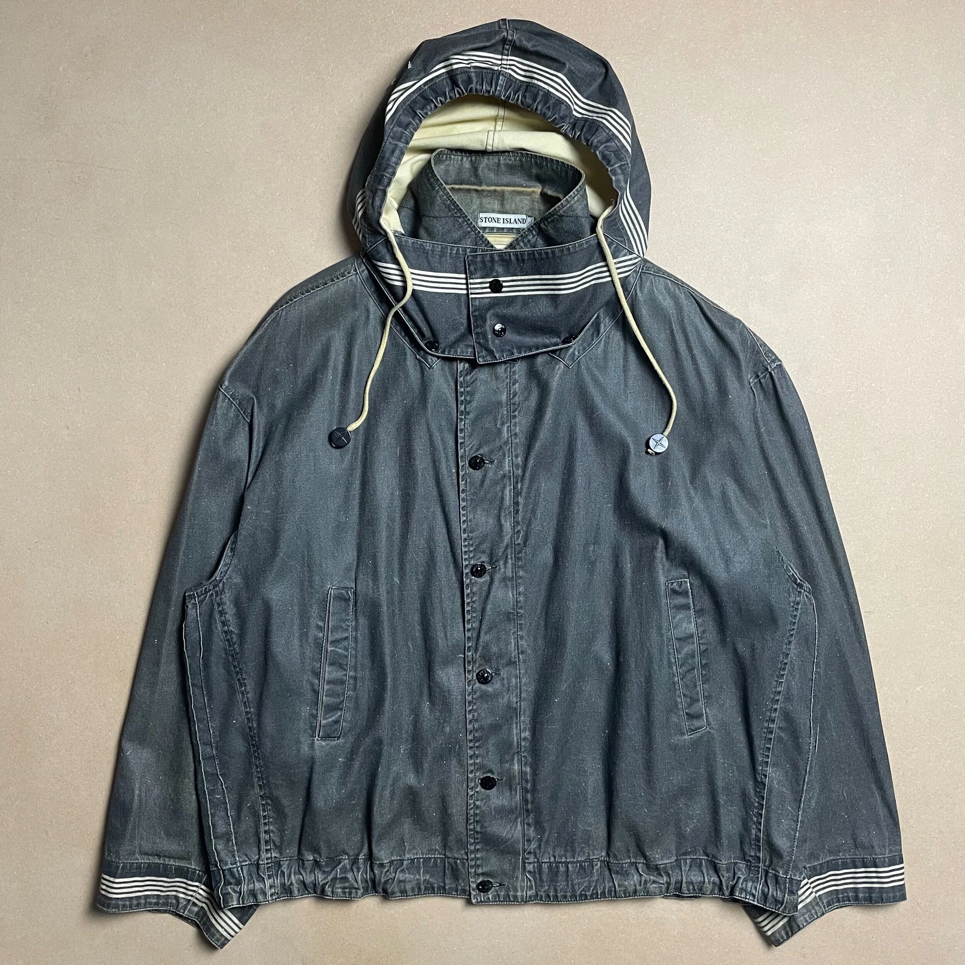 Designed by Massimo Osti. A collectors favourite made in an iconic material known as Sail Cloth that directly references functions of nautical equipment and apparel. A stonewashed denim applied to cotton canvas by means of a heat adhesive, creating an ever lasting garment allowing a unique ageing to every single piece. Complete with a detachable hood and a rear stencil “STONE ISLAND MARINA” spell out.