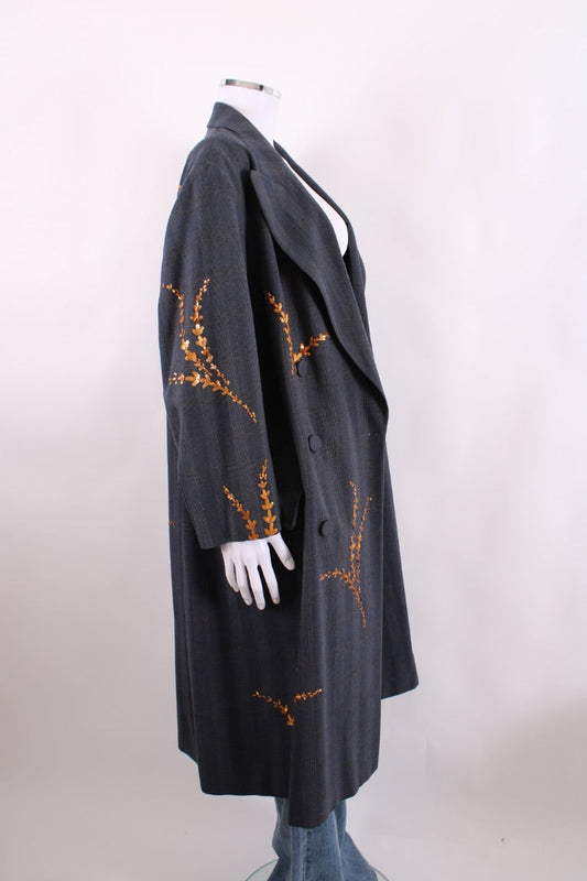 Vintage 1990s Wool High Neck Coat - L