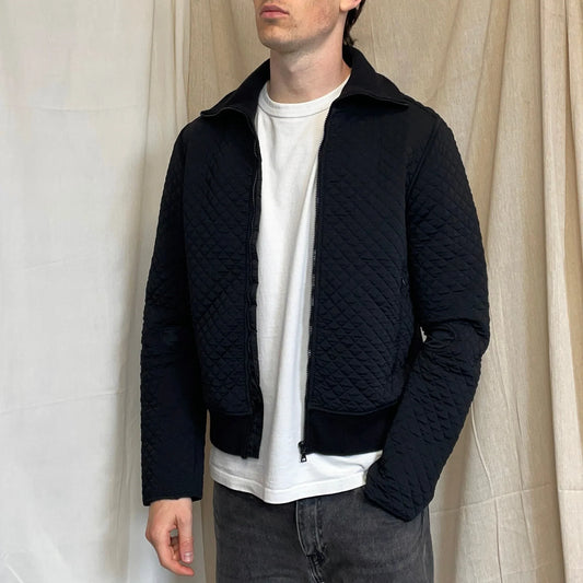 Prada Sport Black 00s Wool & Nylon Quilted Knit Hybrid Cardigan Jacket