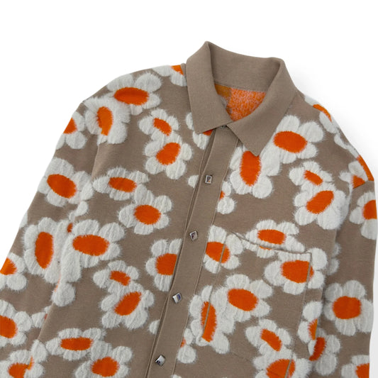 JACQUEMUS LA CHEMISE NEVE FLEURS OVERSHIRT CARDIGAN BEIGE / ORANGE M