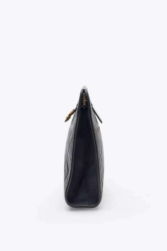 Vintage Chanel Black Leather Clutch Bag With 24k Gold Plated Hardware