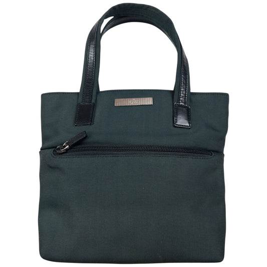 Prada Tessuto City handbag in green nylon with brown leather trim.