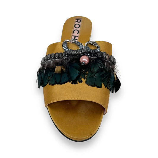 ROCHAS BONITA CRYSTAL AND PLUME EMBELLISHED SANDALS GOLD UK8
