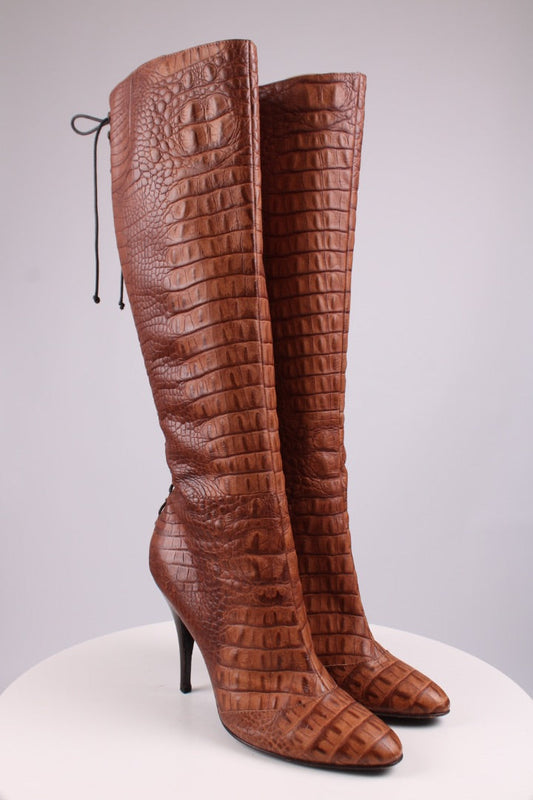 Giuseppe Zanotti Croc lace up knee high heel boots Tan 39.5