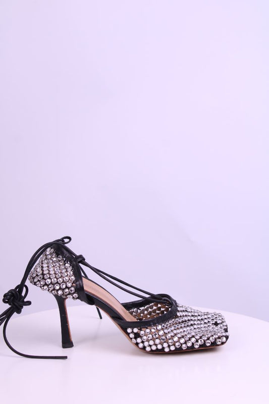 Bottega Veneta Rhinestone Heels Black/ Silver 41
