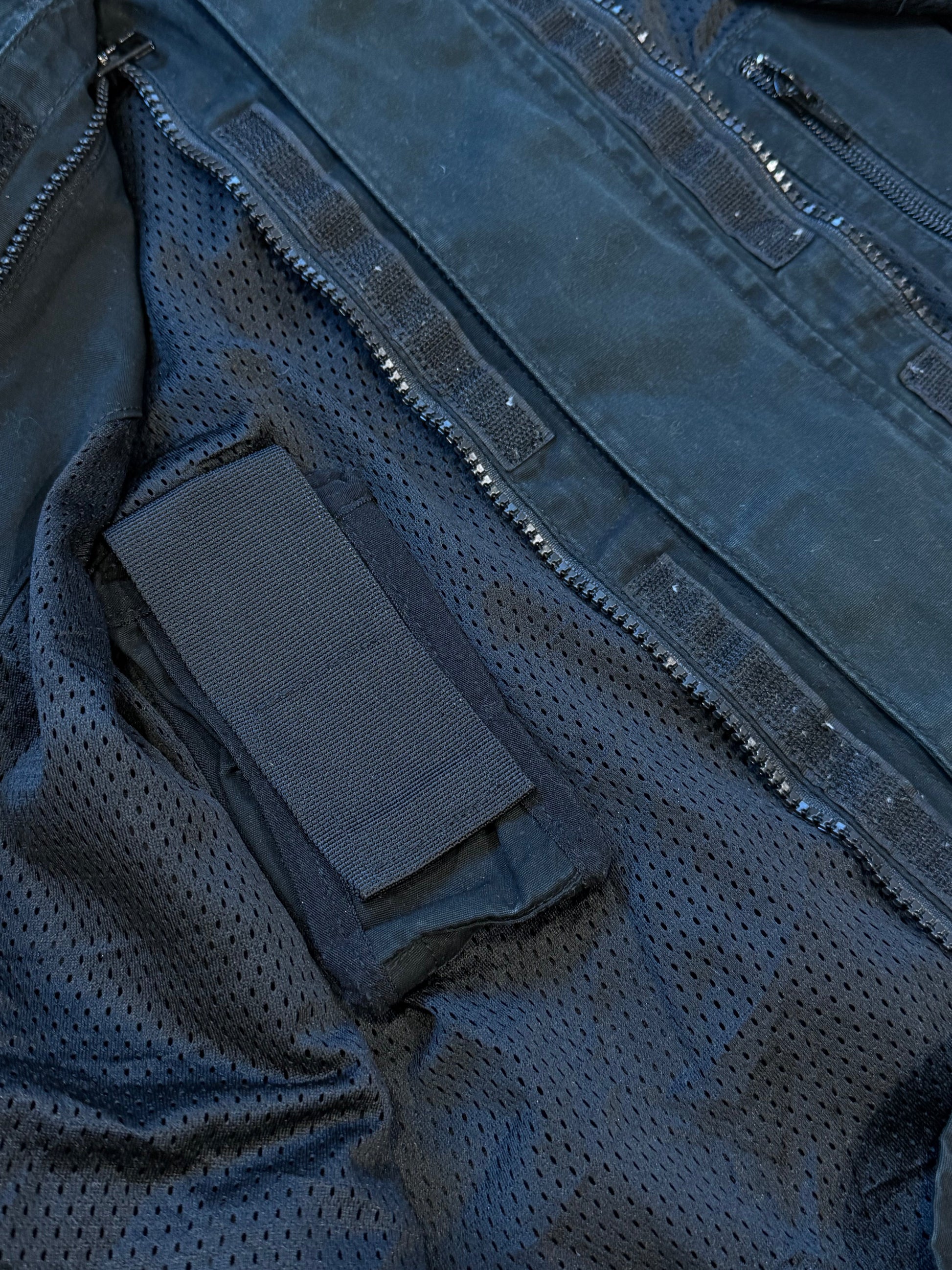 • Following the cancellation of the iconic (ICD) Levi’s Industrial Clothing division line, Levi’s moved forward with design cues from Massimo Osti’s period at Levi’ , the jacket features zipped stealth pockets secured by velcro with zipped entry and accompanied with d-rings, concealed flap pockets with zipped section, velcro phone holder and two large slip pockets, thick neoprene cuffs with velcro fasteners, mesh lined, reinforced panelling at arms and draw cords at either side of hem.