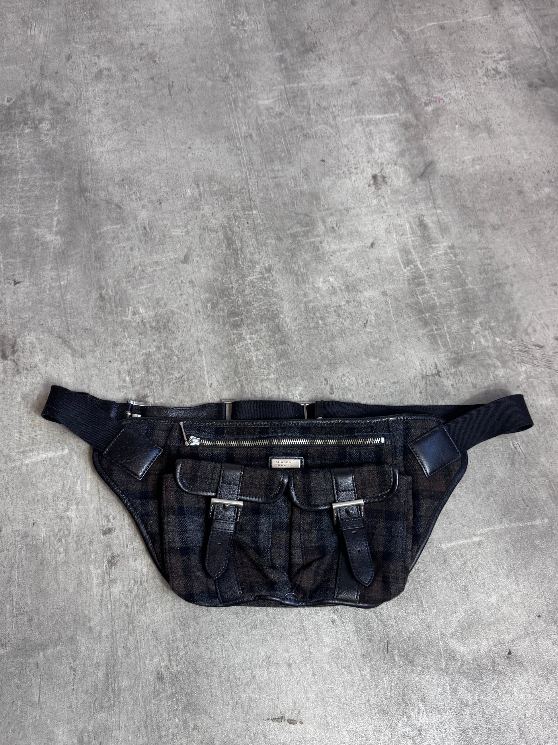 Burberry 00's Leather Detailed Smoke Nova Check Wool Crossbody Bag