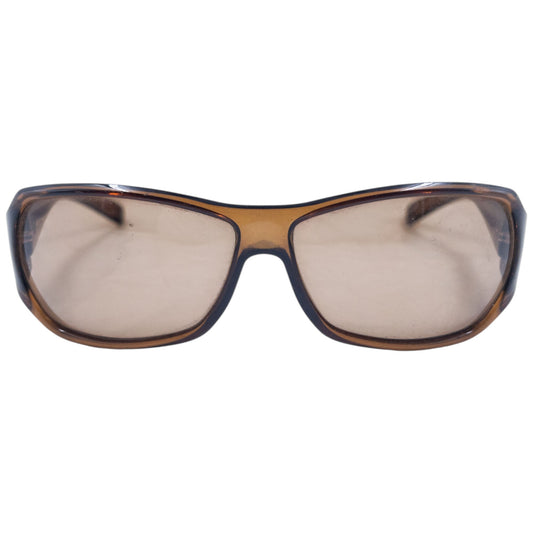 Silver rimless frame fitted with faceted gradient apricot lenses. New old stock. Comes with its original case.