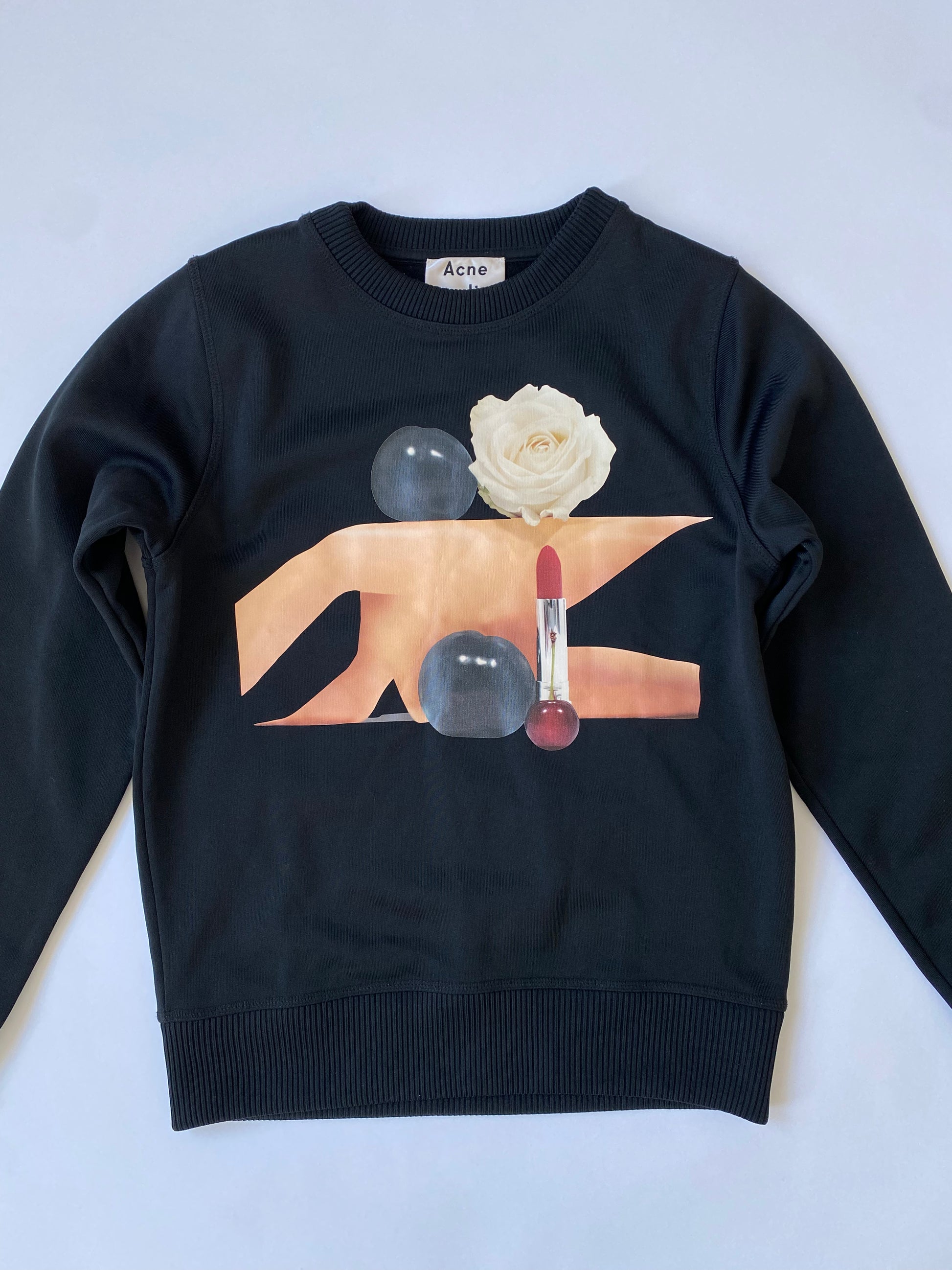 Acne Studios Printed Lipstick Sweatshirt. Black Graphic printed sweatshirt, polyester/ cotton blend. structured fit